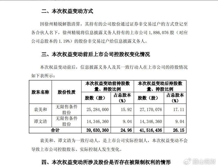 随着公司业绩逐步释放,2025年股价大幅走高,袁美和于2025年12月23日公告减持计划,拟在2026年1月19日之后的三个月内,减持不超过300万股,占公司总股本1.89%。