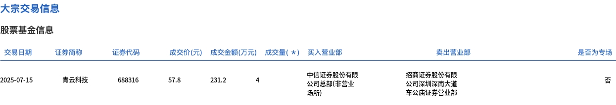 青云科技今日大宗交易折价成交4万股,成交额231.2万元
