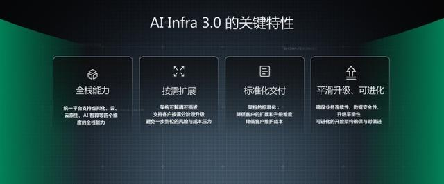 在四层能力的支撑下,青云AI Infra 3.0呈现四大特性:一是覆盖虚拟化、云、云原生、AI智算四大维度的全栈能力;二是采用可解耦、可插拔的灵活架构,支持客户按需分阶段完成升级部署;三是架构遵循标准化设计,既降低客户扩展与升级的技术难度,也有效缩减运维成本;四是兼顾业务连续性、数据安全性与升级平滑性,同时凭借可进化的开放架构保持与时俱进,持续满足客户未来的业务需求。