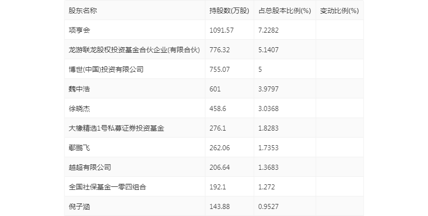 半年报显示,2024年上半年末公司十大流通股东中,新进股东为魏中浩、大橡精选1号私募证券投资基金、全国社保基金一零四组合、倪子涵,取代了一季度末的富诚海富资管-魏中浩-富诚海富通通合新享三号单一资产管理计划、梁干、香港中央结算有限公司、汇泉策略优选混合型证券投资基金。