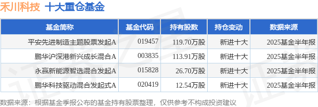 重仓禾川科技的公募基金请见下表: