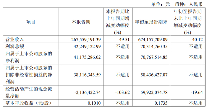 报告显示,微芯生物公司前三季度营业收入为6.74亿元,同比增长40.12%;归母净利润为7076.75万元,上年同期净利-5108.49万,同比大幅扭亏,增长238.53%;扣非归母净利润为5843.64万元,同比增长201.17%;基本每股收益0.17元。