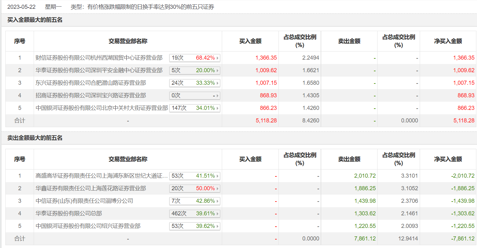 具体来看,知名游资现身龙虎榜,赵老哥(中国银河证券股份有限公司绍兴证券营业部)净卖出1220.55万元。此外,财信证券杭州西湖国贸中心证券营业部、华泰证券深圳平安金融中心证券营业部分别买入1366.35万元、1009.62万元;高盛高华证券上海浦东新区世纪大道证券营业部、华鑫证券上海莲花路证券营业部分别卖出2010.72万元、1886.25万元。