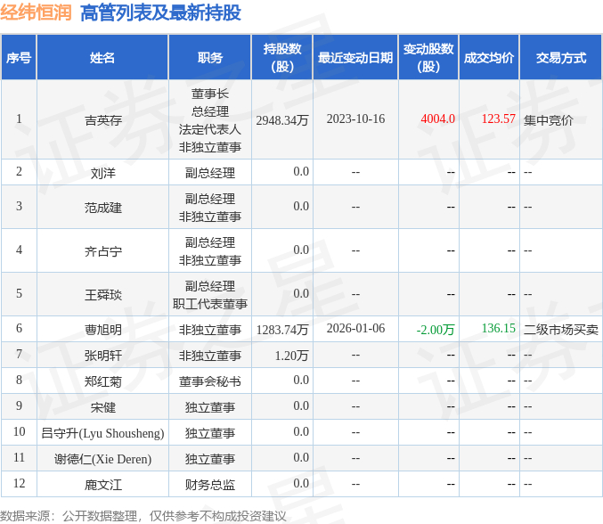 经纬恒润近半年内的董监高及核心技术人员增减持详情如下: