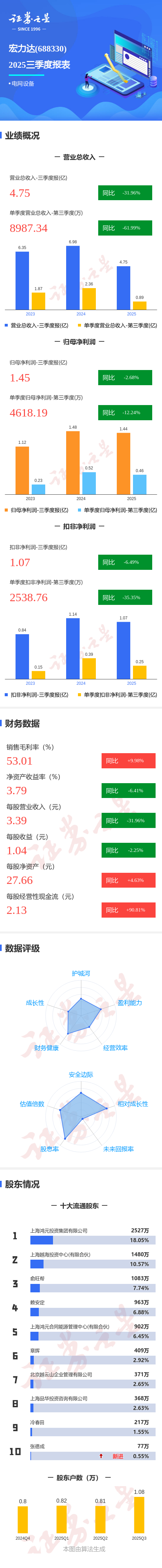 图解宏力达三季报:第三季度单季净利润同比下降12.25%