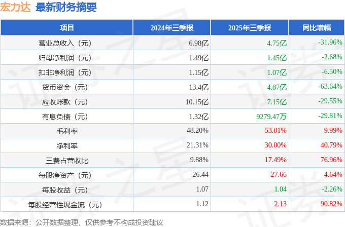 宏力达(688330)2025年三季报简析:净利润同比下降2.68%,三费占比上升明显
