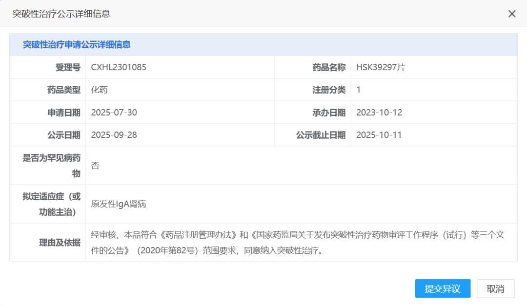 此次HSK39297片拟纳入突破性治疗品种,将进一步加速临床开发进程。