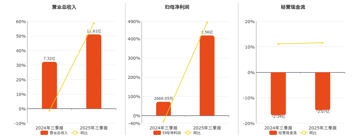 公司营业总收入为11.61亿元。归母净利润为1.56亿元。经营活动现金净流入为-2.07亿元,在已披露的同业公司中排名第145。