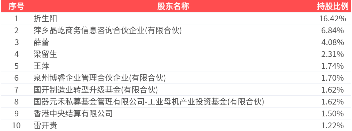 公司股东户数为1.57万户,前十大股东持股数量为1.07亿股,占总股本比例为39.04%,前十大股东持股情况如下: