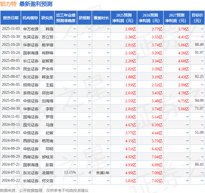 证券之星数据中心根据近三年发布的研报数据计算,东北证券凌展翔研究员团队对该股研究较为深入,近三年预测准确度均值为13.15%,其预测2025年度归属净利润为盈利4.99亿,根据现价换算的预测PE为39.27。