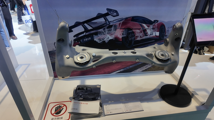 铂力特还展示了搭载20台激光器的S800设备,其核心应用场景是人形机器人产品的打印。现场展示的产品为人形机器人的手臂零部件,采用120μm层厚、高功率大光斑打印,能够有效地提升打印效率,降低打印零件的成本,从而适应人形机器人领域对大批量、低成本的制造要求。