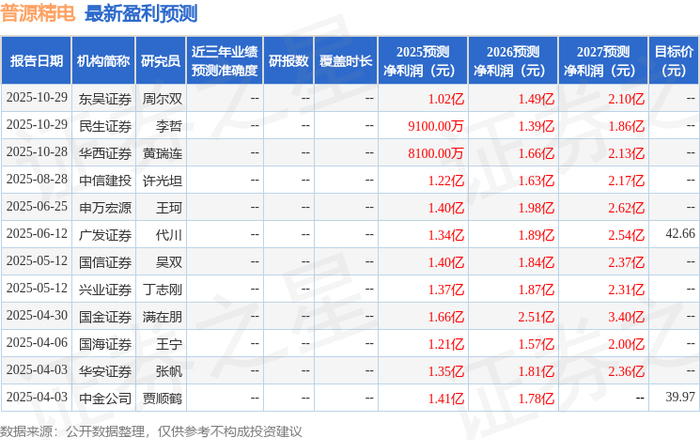 最新盈利预测明细如下: