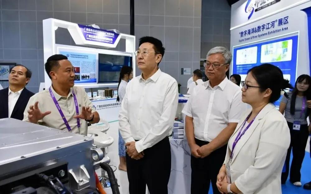 广西壮族自治区党委委员、政协副主席、党组成员何辛幸,百色市委书记、百色军分区党委第一书记黄汝生,自治区发改委党组书记、主任白松涛,自治区党委副秘书长、政研室主任黄兰喜,等多位自治区及百色市领导亲临展位参观指导,对公司展示的创新产品给予高度关注。领导们详细了解了公司氢能产业的发展布局和市场应用情况,并就氢能产业在广西及东盟地区的应用前景进行了深入交流。