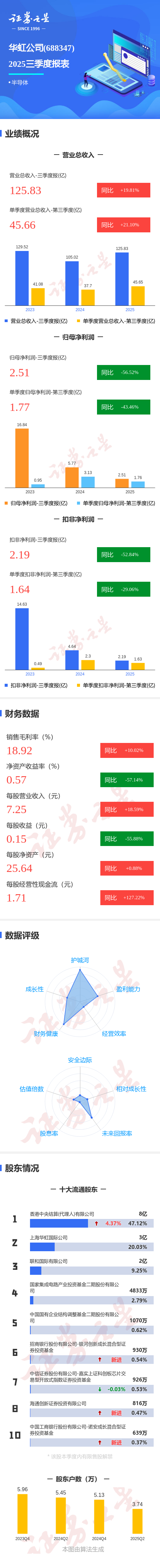 图解华虹公司三季报:第三季度单季净利润同比下降43.47%