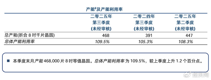 产能利用率方面,截至三季度末,华虹半导体总体产能利用率为109.5%,较上季度上升1.2个百分点。