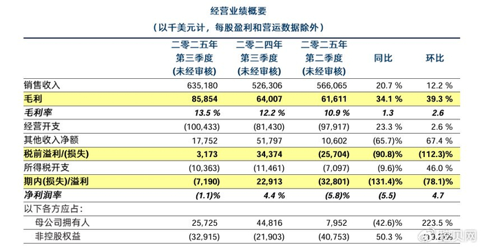 华虹半导体2025年第三季度销售收入创历史新高,达 6.352 亿美元,符合指引预期;毛利率为13.5%,优于指引。在全球半导体需求回暖和公司精益管理的双重驱动下,公司产能利用率持续高位运行销售收入和毛利率均实现同比及环比增长。