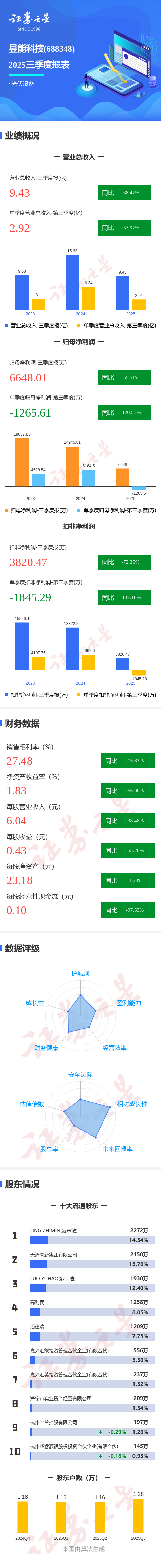 图解昱能科技三季报:第三季度单季净利润同比下降120.53%