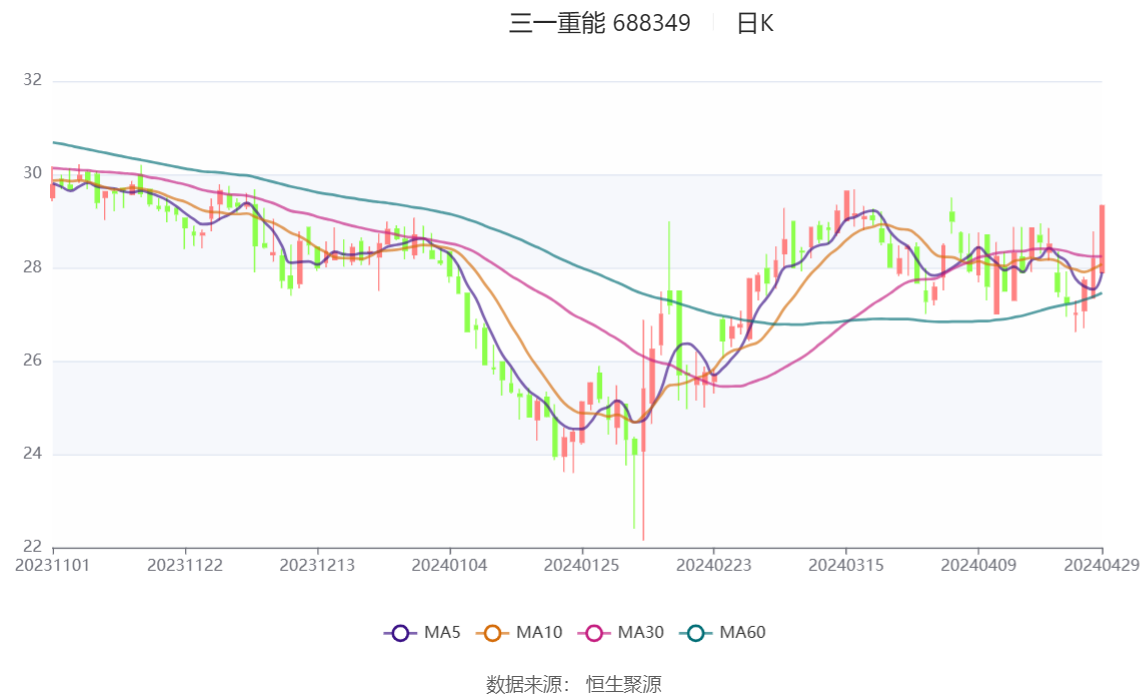 三一重能:2024年第一季度净利润2.66亿元 同比下降44.92%
