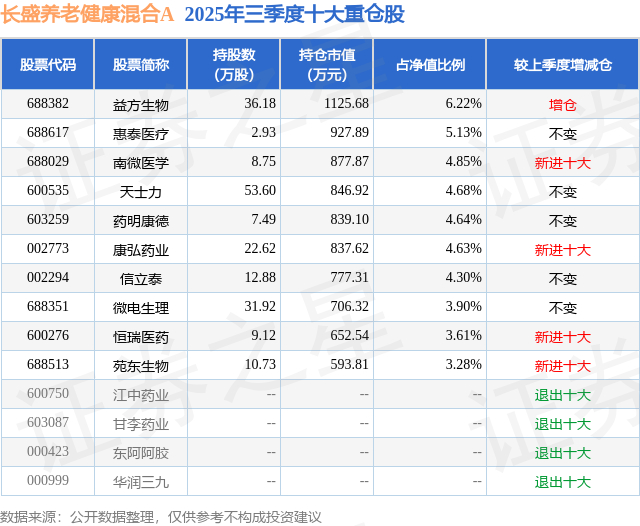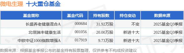 根据2025基金Q3季报公募基金重仓股数据,重仓该股的公募基金共3家,其中持有数量最多的公募基金为长盛基金的长盛养老健康混合A。长盛养老健康混合A目前规模为1.31亿元,最新净值2.0126(11月20日),较上一交易日下跌0.05%,近一年上涨4.85%。该公募基金现任基金经理为郝征。郝征在任的基金产品包括:长盛动态精选混合,管理时间为2022年7月22日至今,期间收益率为-2.09%;长盛景气优选混合,管理时间为2023年4月12日至今,期间收益率为-12.5%;长盛医疗量化股票A,管理时间为2024年8月12日至今,期间收益率为23.79%。