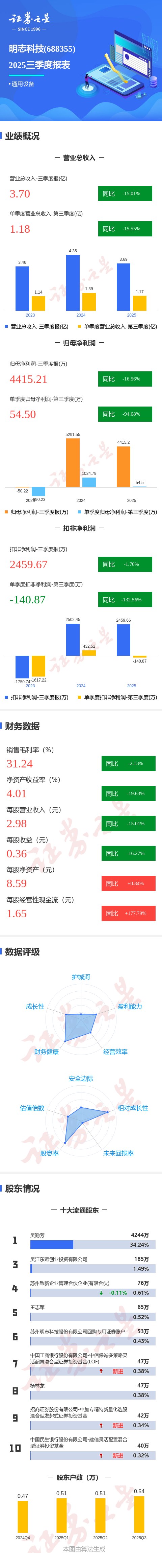 图解明志科技三季报:第三季度单季净利润同比下降94.68%