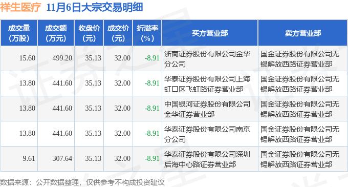 证券之星消息,11月6日祥生医疗发生大宗交易,交易数据如下: