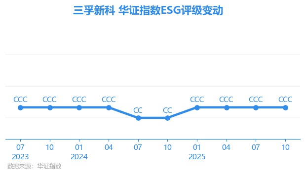 日前,华证指数公布了新一期(2025年10月31日)的ESG评级结果,三孚新科(688359.SH)获得CCC评级(华证指数评级为C起至AAA九档,C为最低档,AAA为其最高一级评级/AA为其第二档),上一期(2025年7月31日)ESG评级为CCC。本期ESG评级在494家化学制品行业A股上市公司中排名第343(上一期排名第327)。