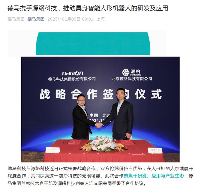 与源络科技近日正式签署战略合作,双方将凭借各自优势,在人形