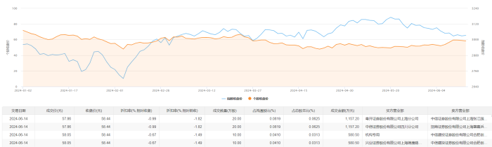 中科飞测6月14日大宗交易成交60万股,成交额3475.4万元,占当日总成交额的10.37%,成交均价57.92元,较市场收盘价58.44元折价0.89%,其中最高成交价58.05元,最低成交价57.86元。