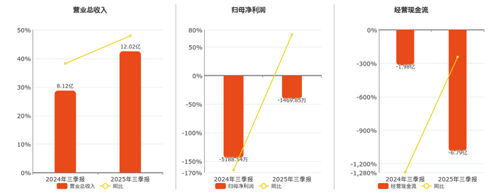 公司营业总收入为12.02亿元。归母净利润为-1469.85万元,在已披露的同业公司中排名第128。经营活动现金净流入为-6.79亿元,在已披露的同业公司中排名第158,较去年同报告期经营活动现金净流入减少4.81亿元。