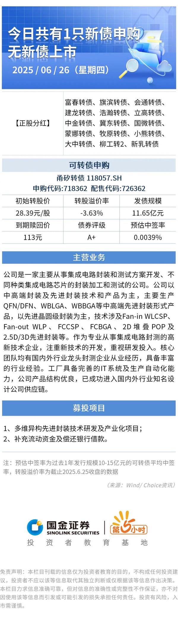 可转债可转债信息提示∣甬矽电子发行可转换公司债券
