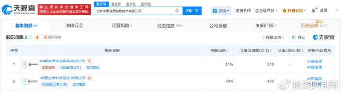 该公司成立于2021年9月,法定代表人为赵明,注册资本1000万人民币,经营范围包括销售纸制品、日用品、卫生用品、化妆品等,由中顺洁柔(002511)和华熙生物(688363)分别持股51%、49%。