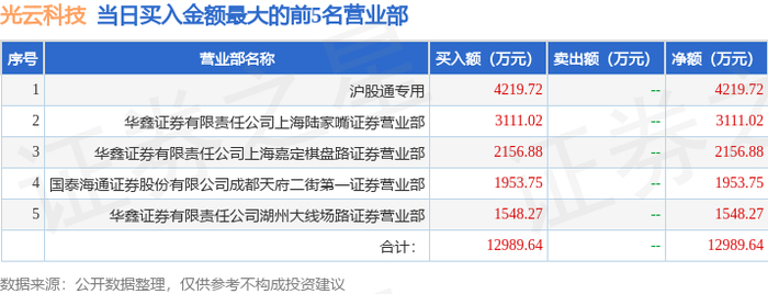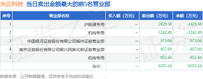 11月18日光云科技(688365)龙虎榜数据:机构净卖出2094.93万元,北向资金净买入1790.14万元