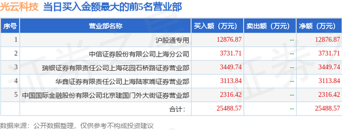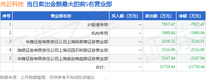 11月19日光云科技(688365)龙虎榜数据:机构净卖出5900.84万元,北向资金净买入4919.4万元