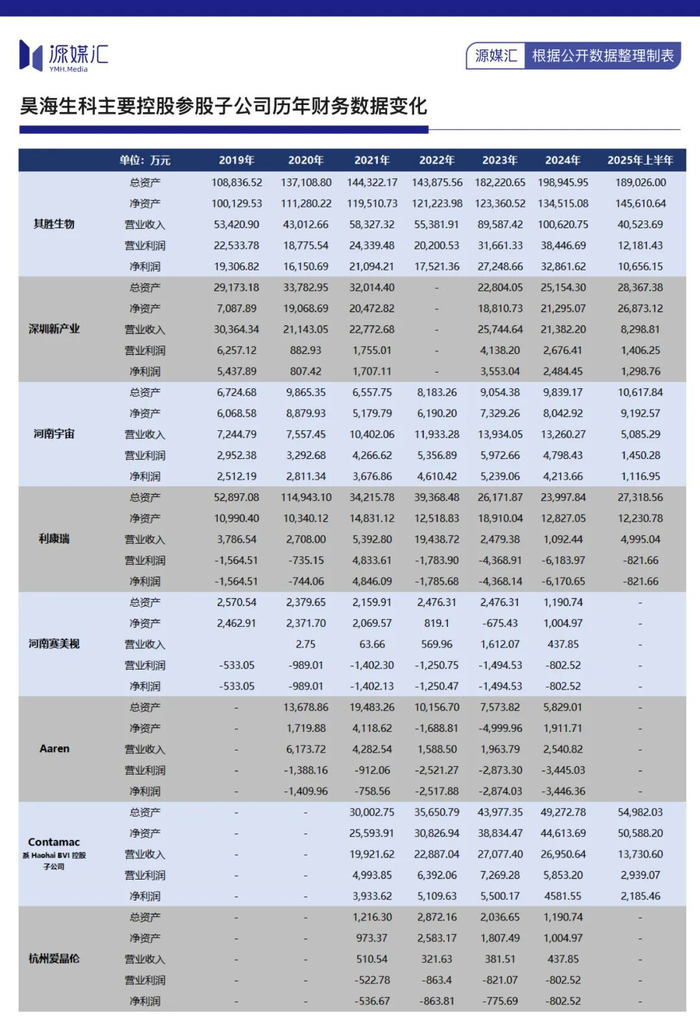 在昊海生科历年财报中,仅有深圳新产业、河南宇宙、Contamac三家子公司带来了持续的营收和利润。其中,深圳新产业虽然产生了利润,但盈利表现仍未达到并购时达成的业绩承诺。