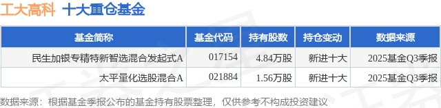 重仓工大高科的公募基金请见下表: