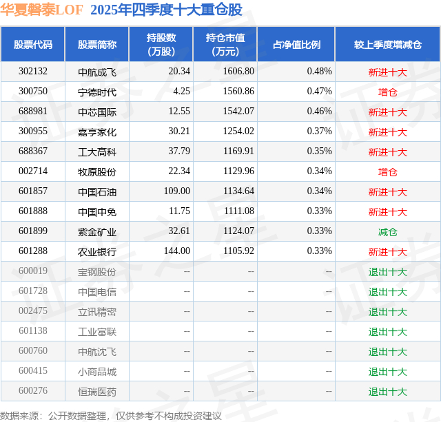 根据2025基金年报公募基金重仓股数据,重仓该股的公募基金共2家,其中持有数量最多的公募基金为华夏基金的华夏磐泰LOF。华夏磐泰LOF目前规模为15.18亿元,最新净值1.7595(3月13日),较上一交易日下跌0.12%,近一年上涨8.88%。该公募基金现任基金经理为张城源 毛颖。毛颖在任的基金产品包括:华夏睿磐泰盛混合A,管理时间为2022年1月20日至今,期间收益率为18.18%;张城源在任的基金产品包括:华夏磐利一年定开混合A,管理时间为2020年7月29日至今,期间收益率为100.97%;华夏磐锐一年定开混合A,管理时间为2020年12月22日至今,期间收益率为94.31%;华夏磐益一年定开混合,管理时间为2021年1月26日至今,期间收益率为62.73%。