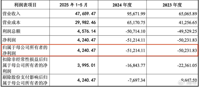 巨额亏损主要来自易冲科技,该公司2023年和2024年归母净利润分别为-5.02亿元、-5.12亿元,两年合计亏损10.14亿元,这是由于大量研发投入以及实施股权激励带来巨额股份支付费用。