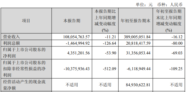 2025年前三季度,奥来德营业收入为3.89亿元,同比下降16.12%;归属于上市公司股东的净利润3135.61万元,同比下降69.03%;归属于上市公司股东的扣除非经常性损益的净利润-611.89万元,上年同期为6614.39万元;经营活动产生的现金流量净额为8493.06万元,上年同期为-2712.02万元。