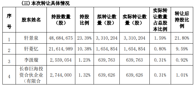轩景泉、轩菱忆、李汲璇、长春巨海投资合伙企业(有限合伙)参与本次询价转让。