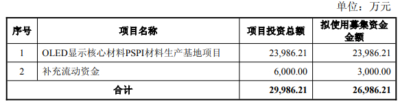 奥来德2020年8月28日发布的招股说明书显示,公司计划募集资金6.77亿元,分别用于年产1万公斤AMOLED用高性能发光材料及AMOLED发光材料研发项目、新型高效OLED光电材料研发项目、新型高世代蒸发源研发项目。