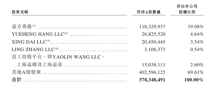 截至2025年12月24日,王博士通过其控制实体,即益方香港、Aargletschers 及益方开曼,持有已发行股份总额的约19.08%;江博士通过其全资附属公司 YUEHENG JIANG LLC持有已发行股份总额的约4.64%;及代博士通过其全资附属公司XING DAI LLC持有已发行股份总额的约3.54%