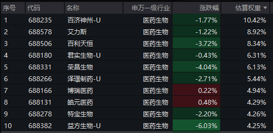 【科创创新药ETF汇添富(589120)标的指数前十大成分股】