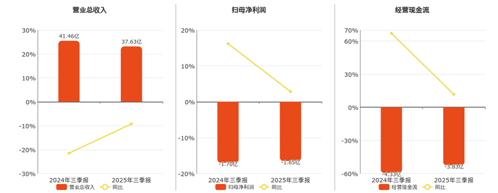 公司营业总收入为37.63亿元。归母净利润为-1.65亿元,较去年同报告期归母净利润增加481.55万元,实现4年连续上涨。经营活动现金净流入为-3.83亿元,较去年同报告期经营活动现金净流入增加5051.93万元,实现4年连续上涨。