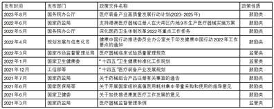 《广东省发展生物医药与健康战略性支柱产业集群行动计划(2021-2025年)》指出,完善双核多节点产业空间布局,打造生物医药与健康产业集聚区。打造以广州、深圳市为核心,以珠海、佛山、惠州、东莞、中山市等为重点的产业创新集聚区。广州、深圳、佛山、东莞等地纷纷制定相应政策,推进医疗器械企业落地,鼓励医疗器械创新发展。近年来国家层面发布的医疗器械行业主要政策见下表: