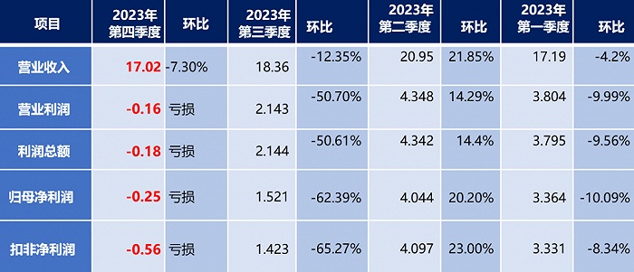 现在看,四季度非但没有回暖,反而更为寒冷:营收环比三季度继续下降,甚至发生了全面亏损。