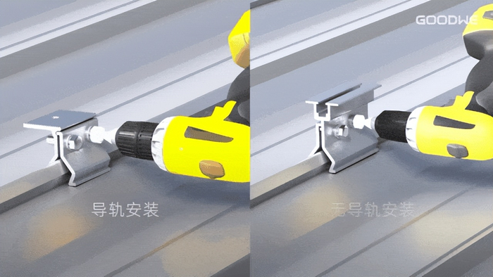 无导轨安装采用夹具固定方式,每片组件可设置 4 个夹具固定点,单点可调节,安装简便快捷,适用于新建厂房、彩钢瓦屋面等无需额外防水处理的场景;有导轨安装则通过机械固定,适配老旧厂房、屋面平整度低、抗风揭要求高的区域,确保安装稳定性与准确性。两种安装方式均无需破坏屋面结构,施工路径清晰可控。