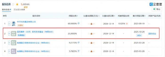 近日,工商信息显示,南通晶体有限公司(以下简称“南通晶体”)发生工商变更,新增国家大基金三期旗下国投集新(北京)股权投资基金(有限合伙)为股东,同时注册资本由3亿人民币增至4亿人民币,持股25%。