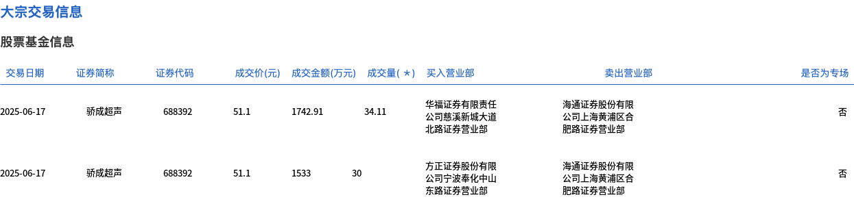 骄成超声今日大宗交易折价成交64.11万股,成交额3275.91万元
