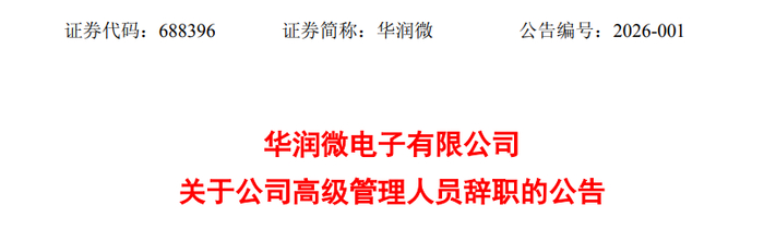 公告显示,华润微电子有限公司董事会于近日收到现任高级管理人员李舸提交的书面辞职报告。李舸因工作调整原因,申请辞去公司副总裁兼总法律顾问、首席合规官职务,辞职后将不再担任公司任何职务,辞职报告自送达董事会之日起生效。
