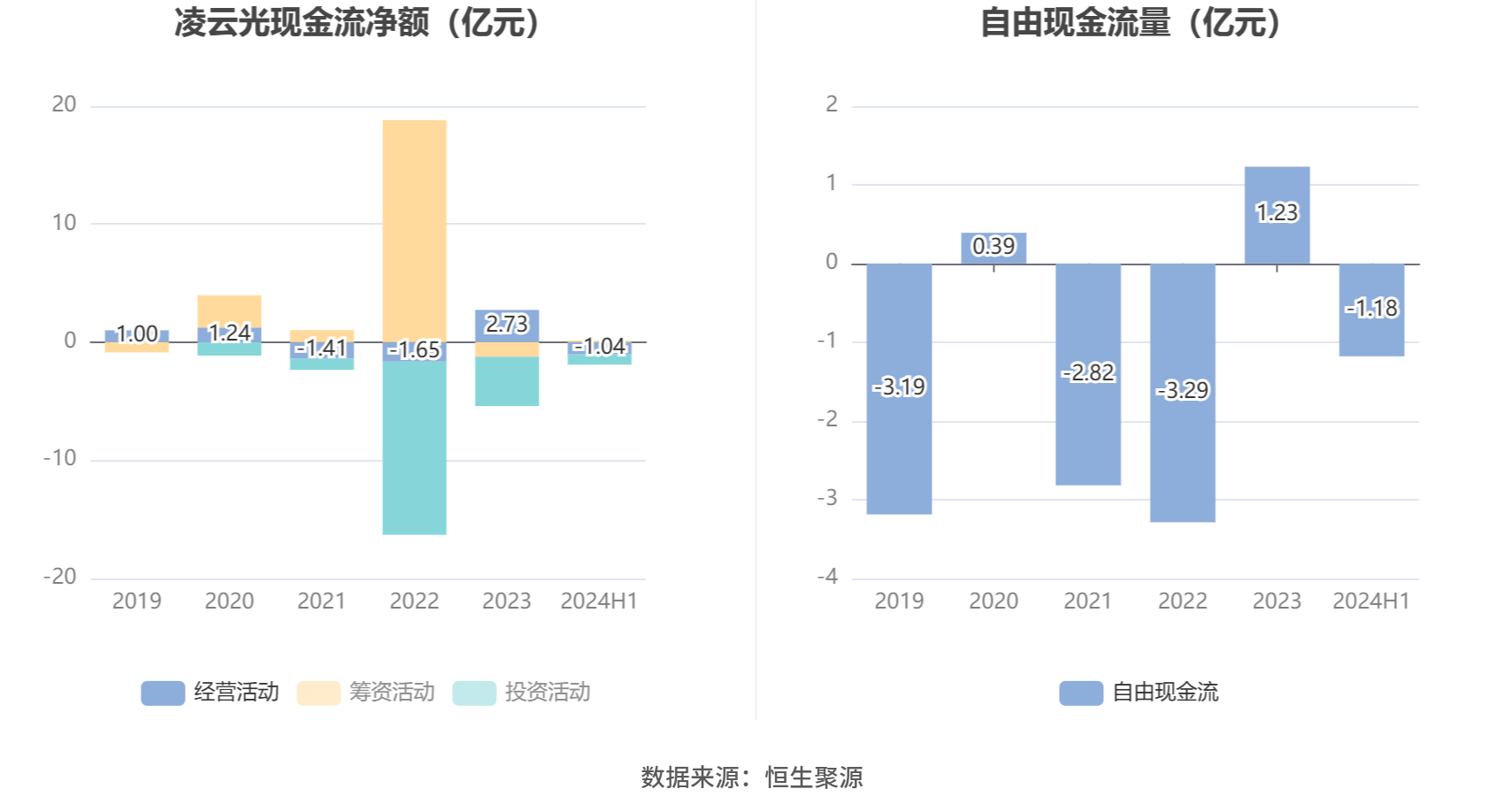 进一步统计发现,2024年上半年公司自由现金流为-1.18亿元,上年同期为-0.57亿元。